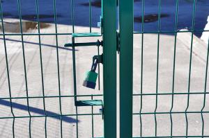 Виріб укомплектований петлями, перетворений планкою, ригелем і засувом під навісний замок.